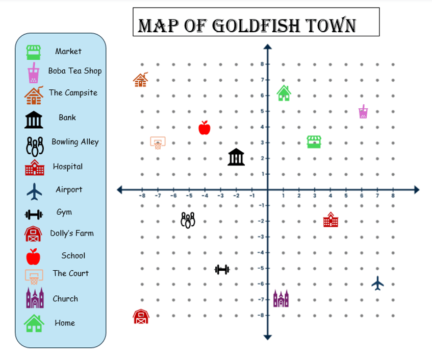 You are at the Church, you move 5 units up and 3 units right, where are you now?