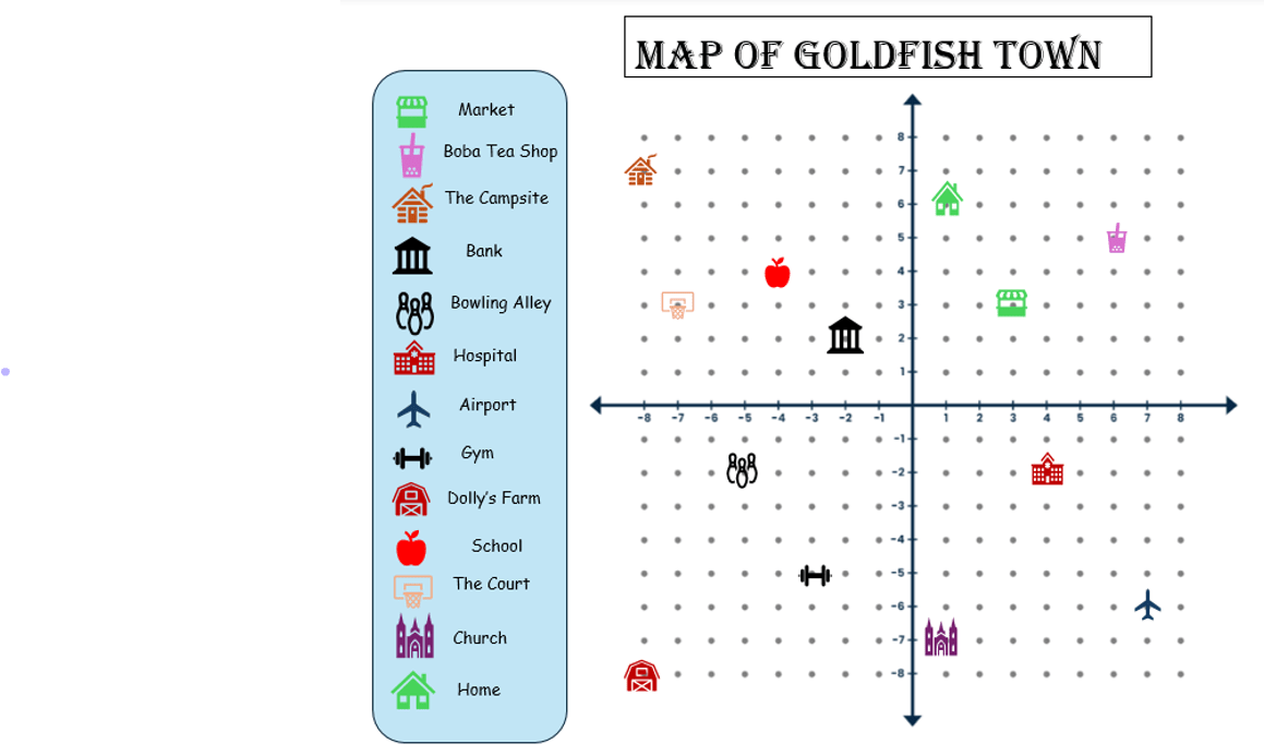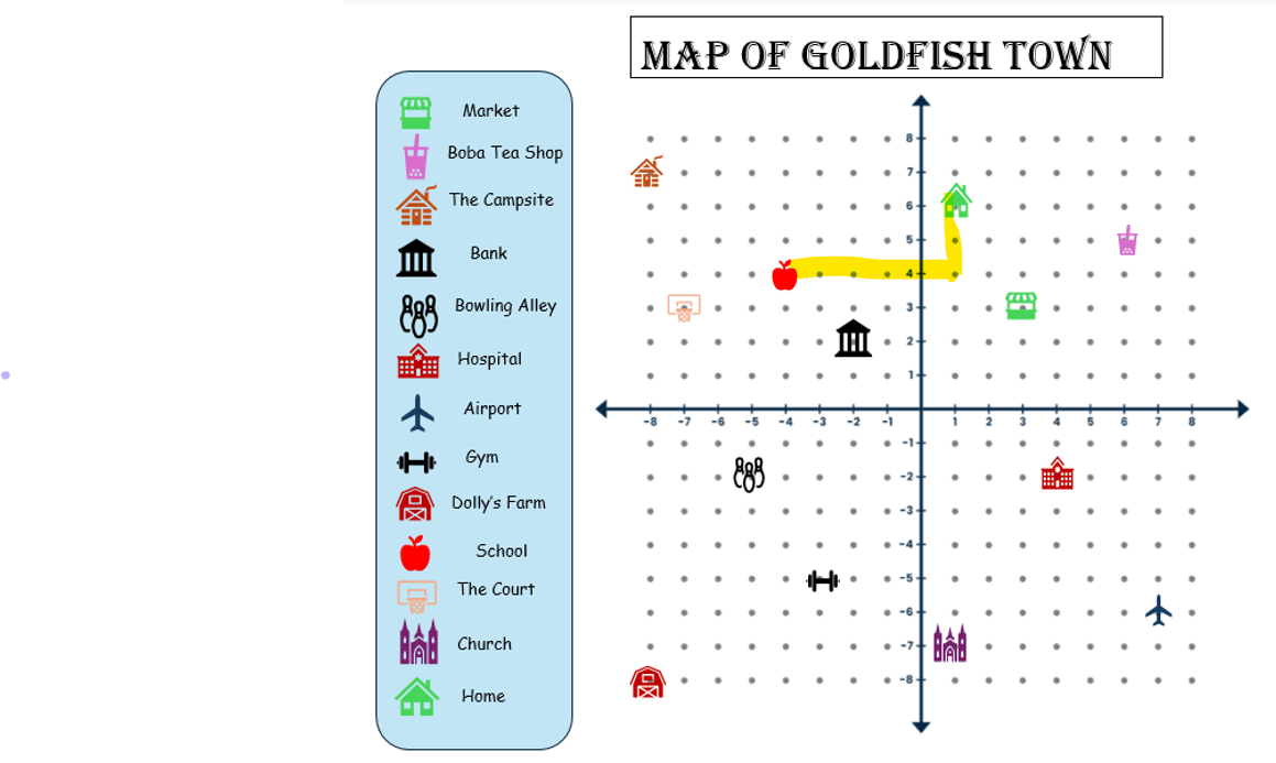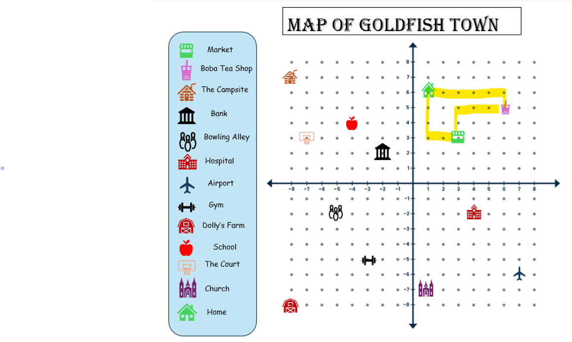 You start at the boba tea shop, you move -13 units and -2 units down, where are you now?