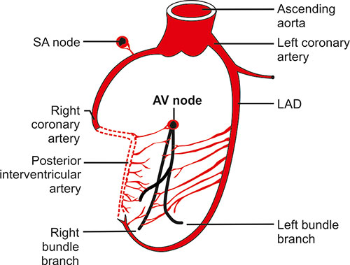 қай коронарлы артерия зақымдағанда арритмияға алып келеді(брадикардия, АВ блокада)?