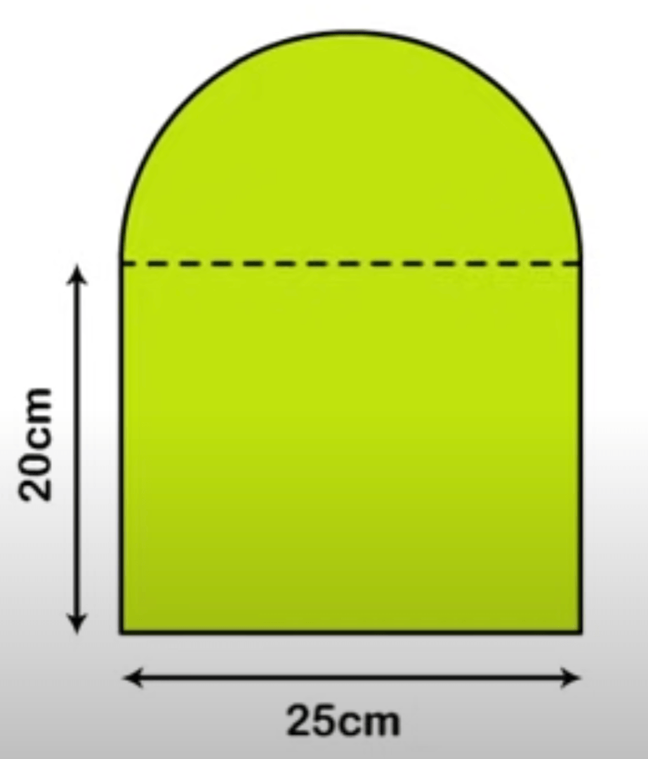 Perimeter of the half circle: (25 x pi) ÷ 2