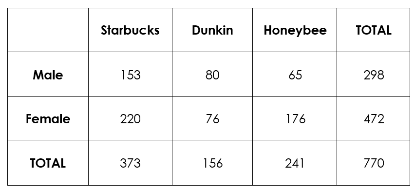 Use the two-way table below to determine the probability that a person prefers Starbucks coffee.