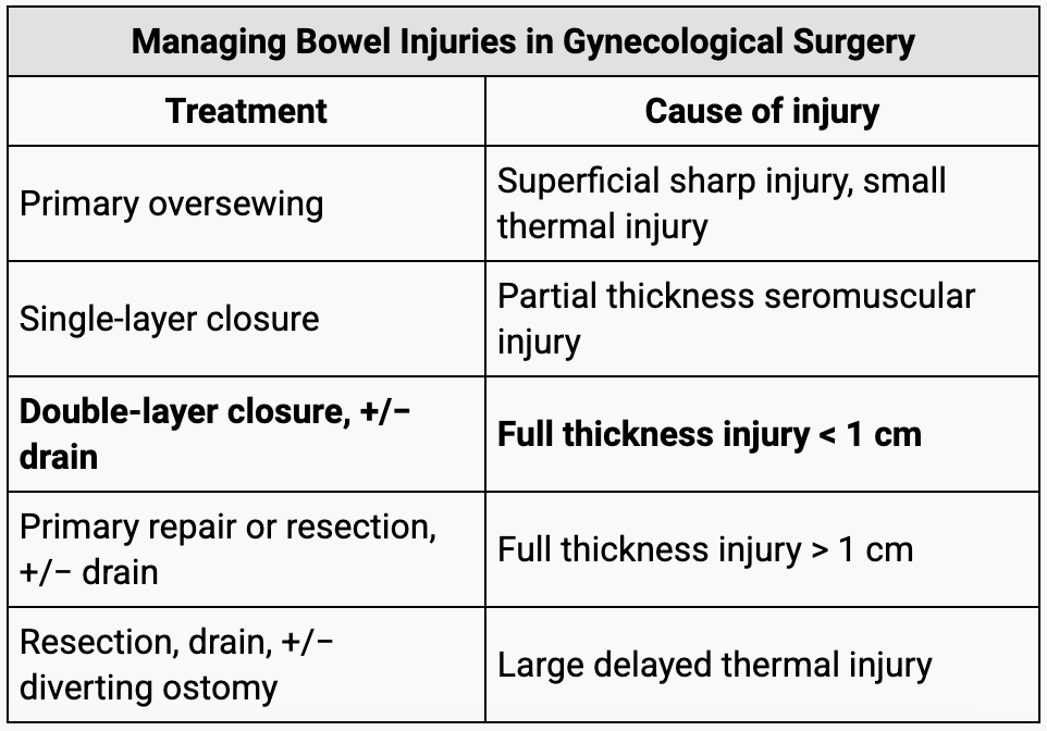 What is the appropriate technique for a 5mm full thickness small bowel injury.