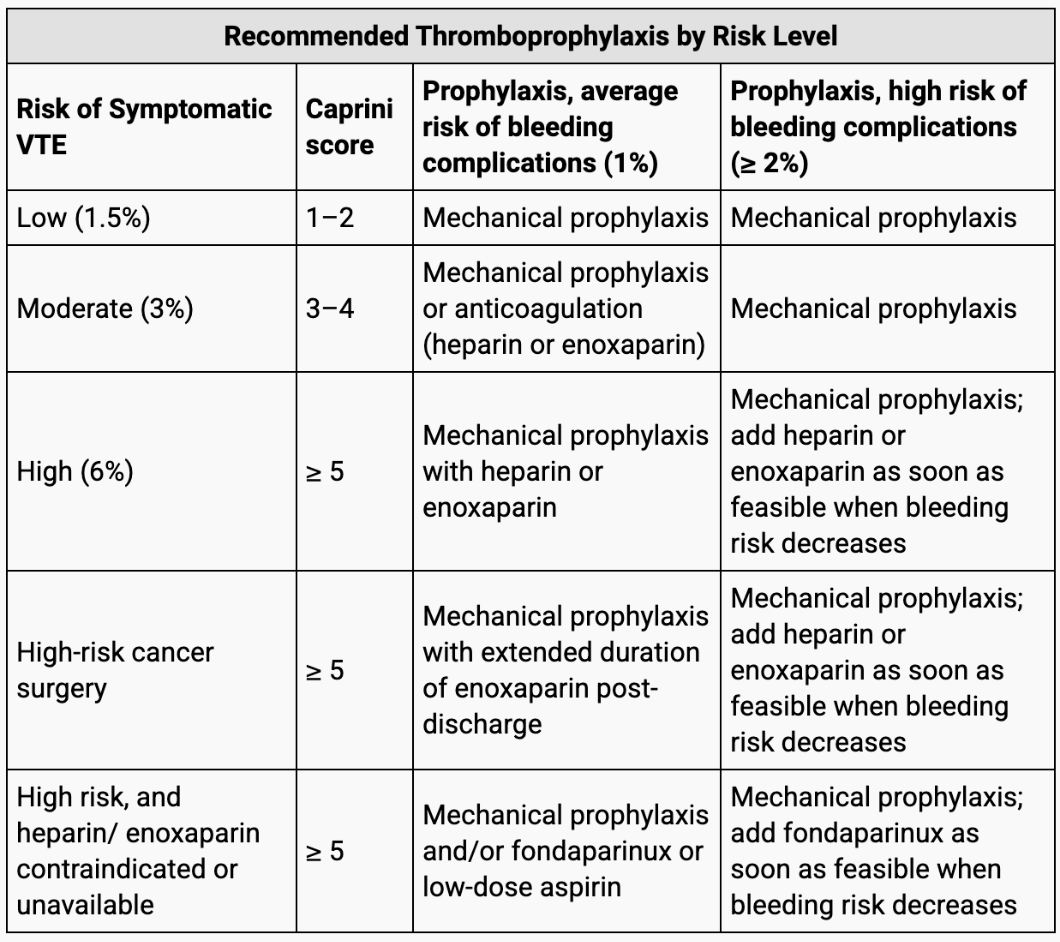 What VTE prophylaxis is recommended for a patient with a high risk for VTE?