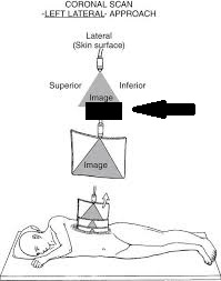 If the planning plane is coronal left lateral, what anatomic area is the arrow pointing at?