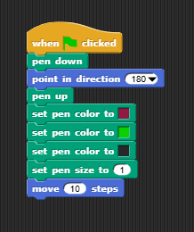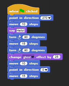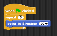 The direction the sprite is facing at the end of this loop when the green flag is pressed: