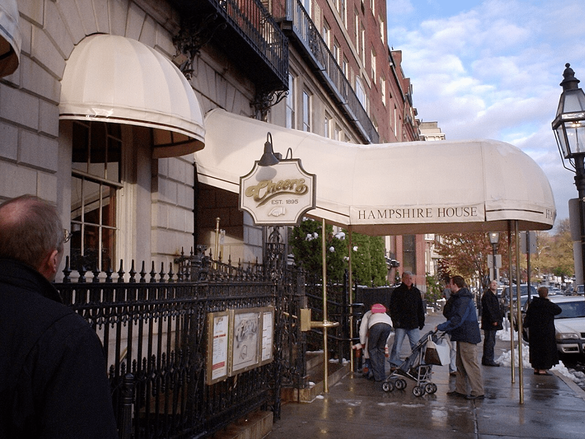 This show's exterior takes a visual cue from the Bull & Finch Pub on Beacon Street in Boston.