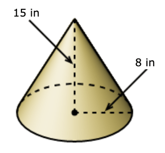 What is the volume of this cone? Use 3.14 for π when multiplying and round to the nearest tenth place.