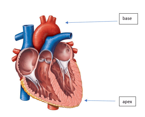 Where is the apex of the heart? Where is the base?