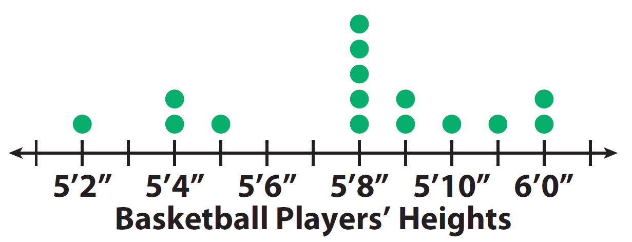 If each dot represented 4 players, how many players are in between 5'2 and 5'5?
