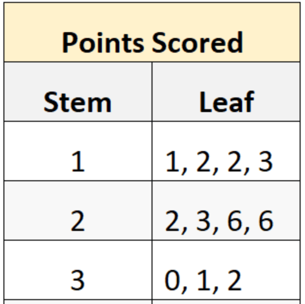 When finding the number of data points using a stem and leaf plot, do you count the stems or the leaves?