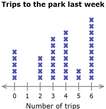 True or False: There were two more park trips made from the "2 trips" group than the "5 trips" group.