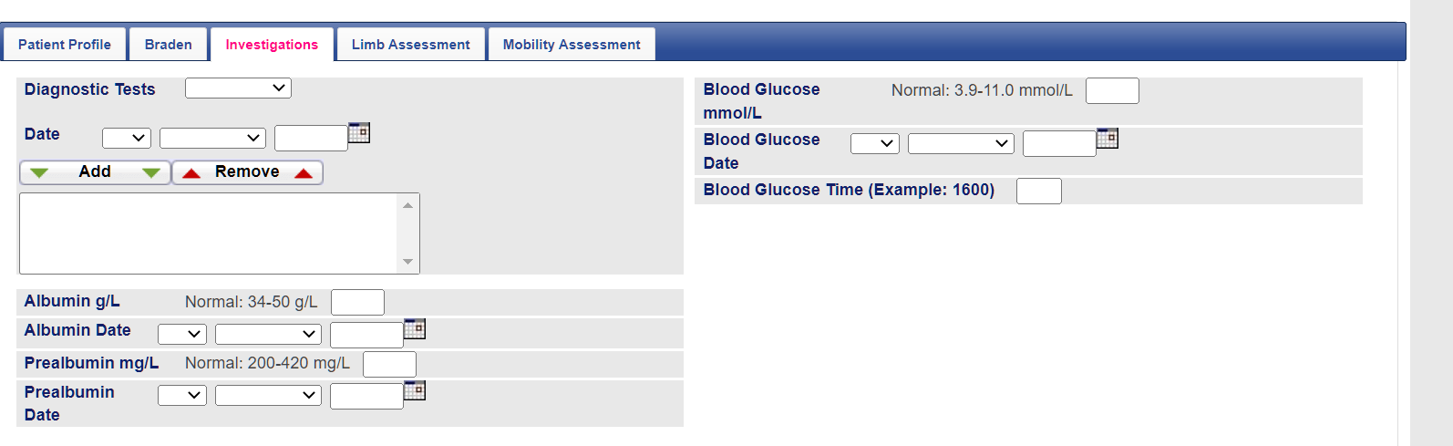 • Where do we document recent Blood sugar levels and /or any other diagnostic tests?