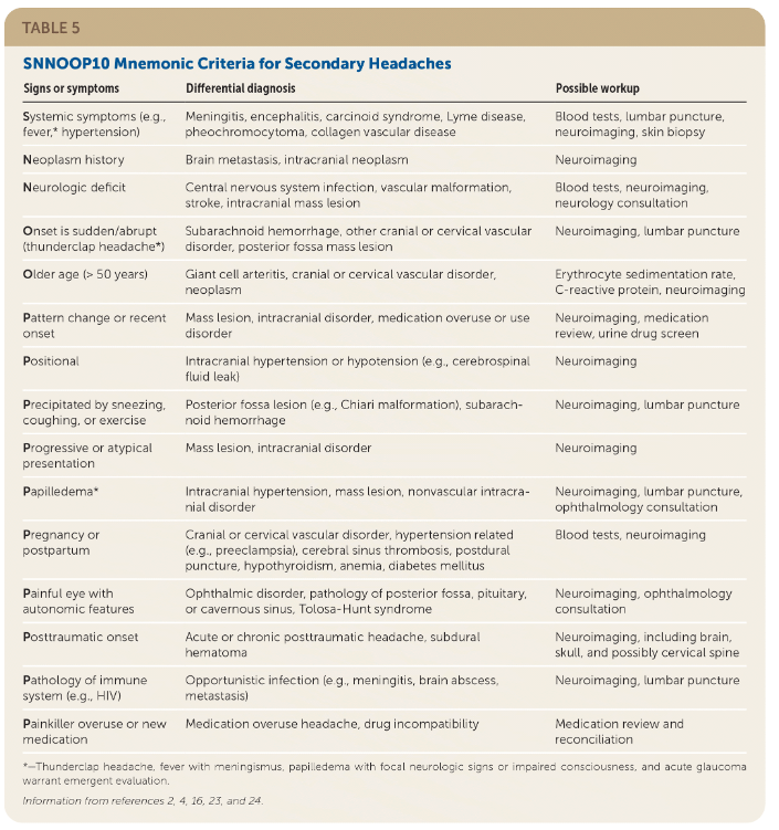 List 8 features of headaches that suggest a secondary cause, warranting evaluation with neuroimaging
