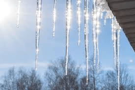 These narrow, downward-pointing ice formations grow when dripping water freezes—often found hanging from roofs