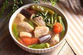 What is a sour soup made with tamarind and vegetables, often cooked with pork, shrimp, or fish?