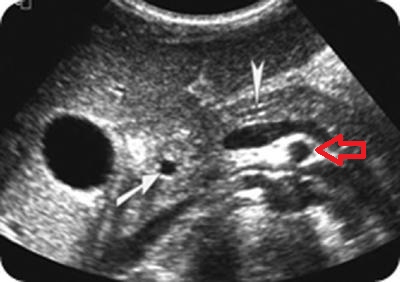 What is the most likely diagnosis (black arrow) in a patient with elevated liver enzymes?