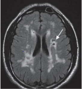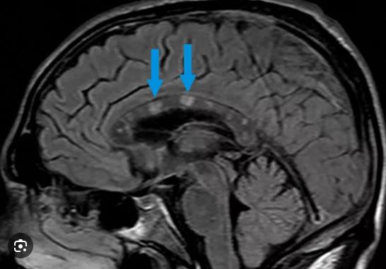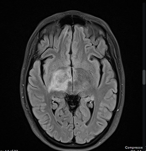 This diagnosis should be highly suspected for an individual with a brain MRI showing: