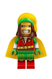 After trying it on and ripping the tights off, Lego Robin gets his outfit from this suit (think Marley)