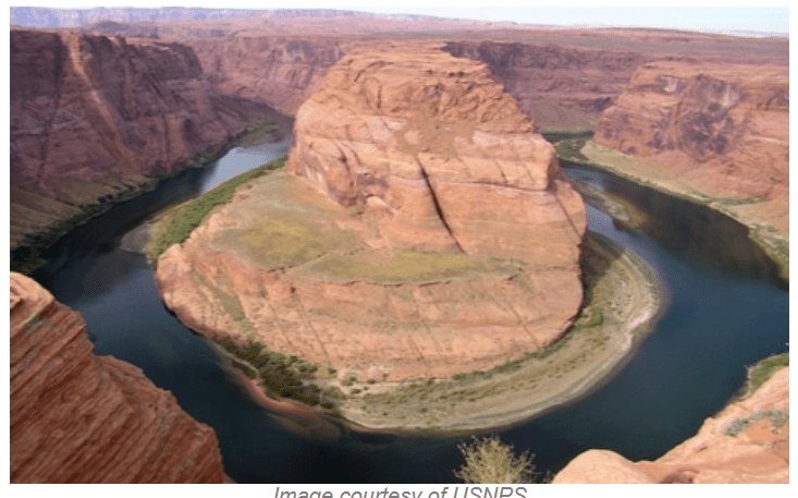 The image below shows a land formation in the southwestern United States. What process most likely caused this land formation?