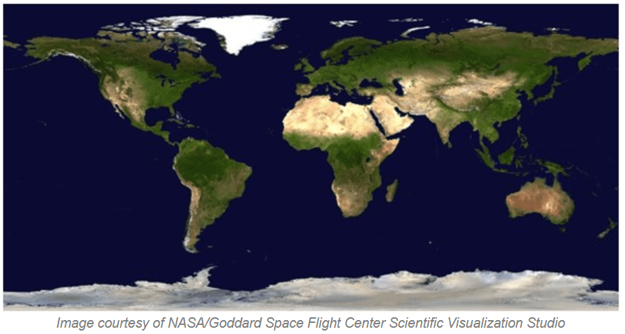 This true-color image shows the entire Earth. Examine the oceans. Which of the following best describes the Earth's oceans?
