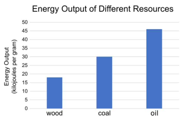 The graph below shows how much energy is released when different resources are burned. Based on the data in the graph, how do the different resources compare?
