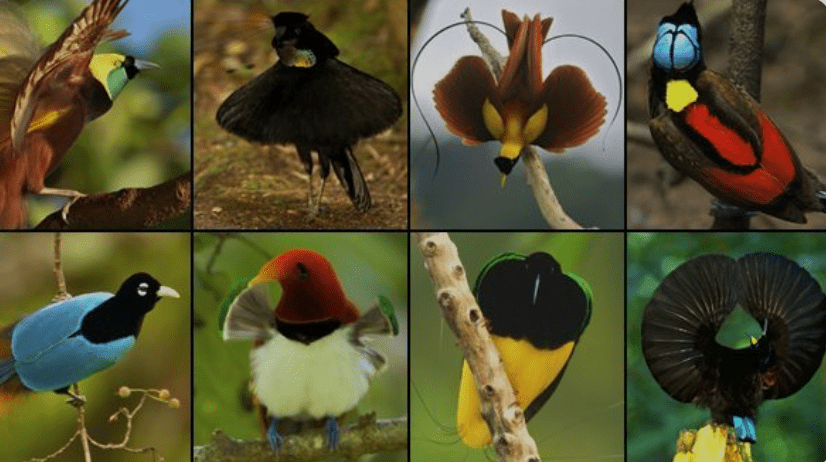 These birds of paradise have colorful feathers to attract a mate, which is an example of this type of relationship.