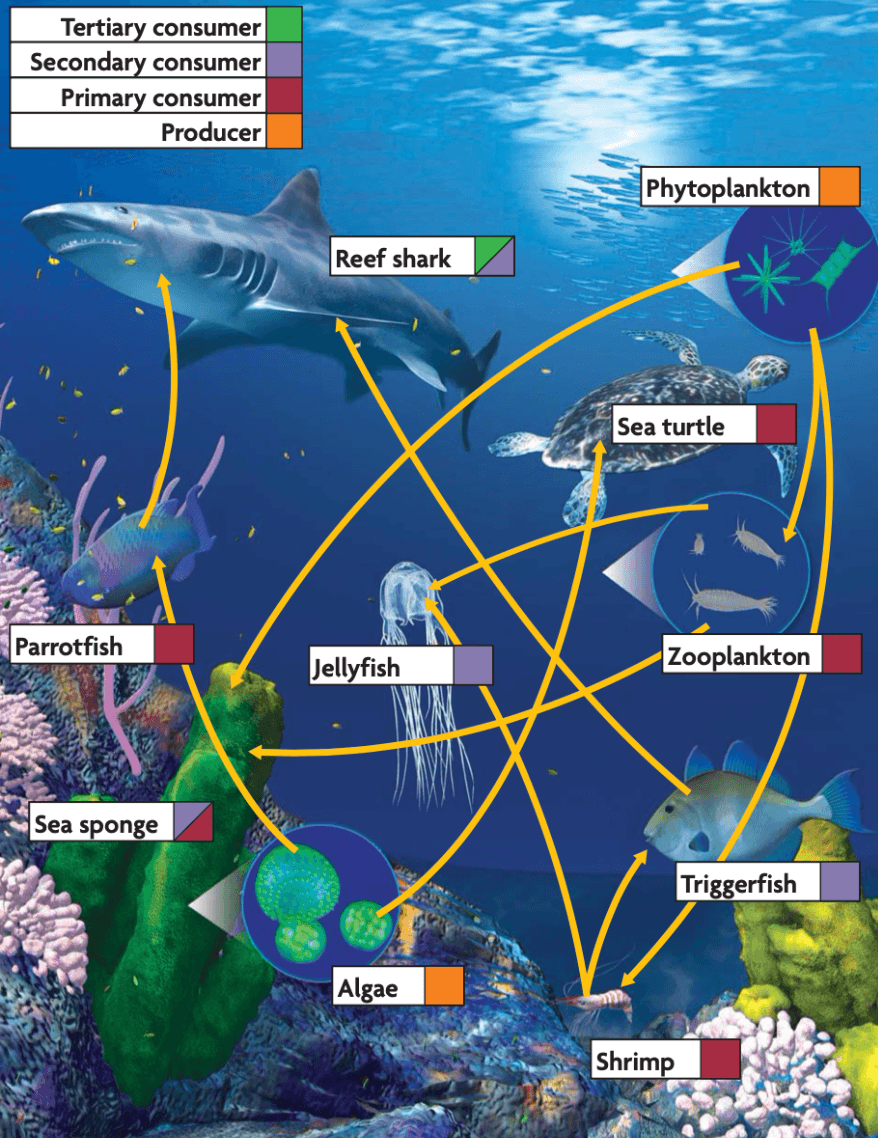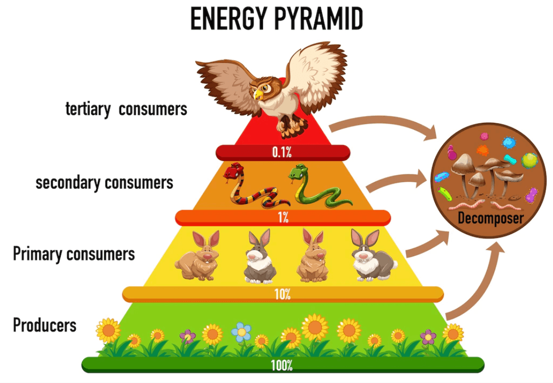 The ecosystem should have a larger carrying capacity for the primary consumer than the secondary consumer, because there is more energy available at the lower trophic levels.