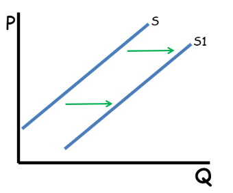 A decrease in the costs of production will cause this kind of shift in supply