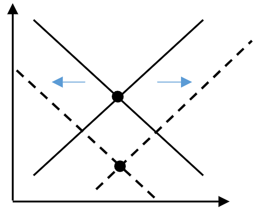 An increase in the price of a substitute good will cause this kind of shift