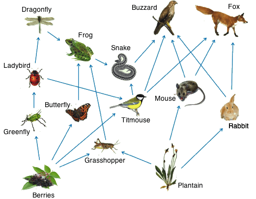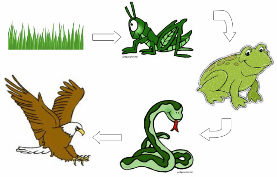 In this food chain, if the frogs were to go extinct, how would that affect all the other populations?