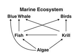 What would likely happen to the algae population if there was an overabundance of birds in this ecosystem?