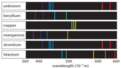 When light is passed through a glass prism, the atomic emission spectrum is produced. Each element has it's own set of frequencies emitted by the atoms of the element. The element(s) in the mixture is(are) ______________.