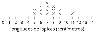 Si las medidas de lápices eran: 7, 6, 11, 9, 9, 7, 7, 8, 5, 6, 8, 8, 7, 9, 6, ¿cuál error cometieron cuando llenaron el diagrama de puntos?