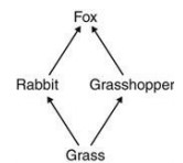This is a food chain that includes grass, a grasshopper, and a bird.