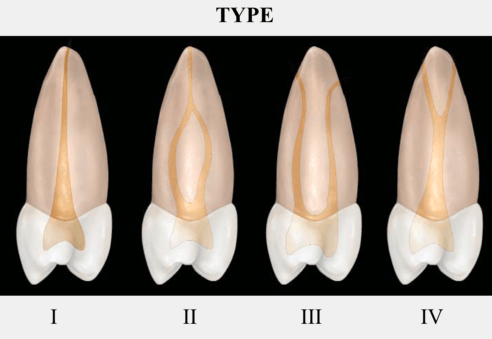 Type 4 - one canal that bifurcates at the apical 1/3 (Difficult to treat).