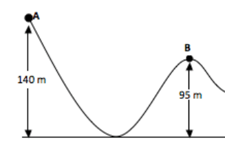 If a cart of mass 289 kg were to fall down from rest, calculate the KE at point B