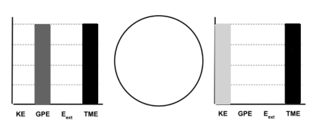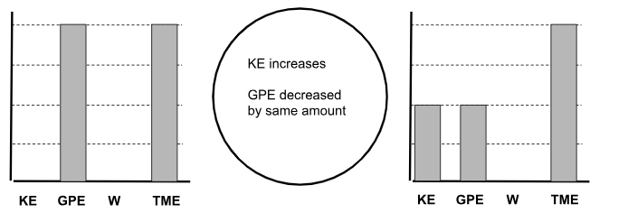 Draw an Energy Chart for a ball that started at rest at the top of a hill, then picked up speed and rolled to the bottom of the hill.