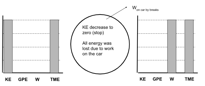 Draw an Energy Chart of a car moving and then rolling to a stop. EXPLAIN!!!