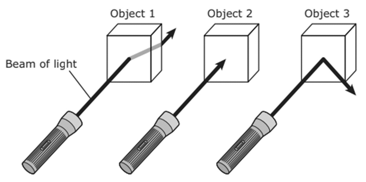 A girl is studying how light reacts to different mediums. State TWO reasons why this is NOT an example of refraction.