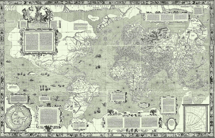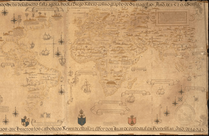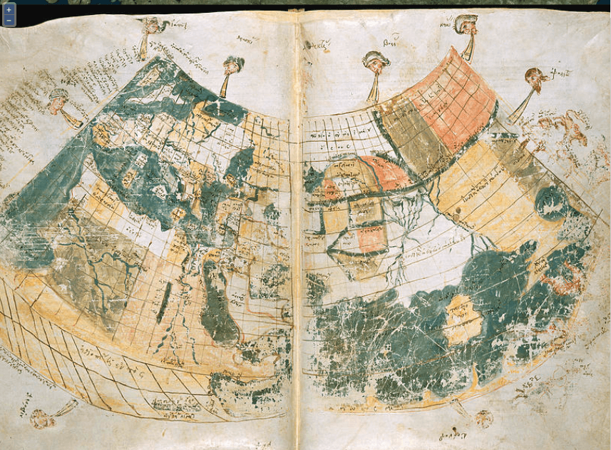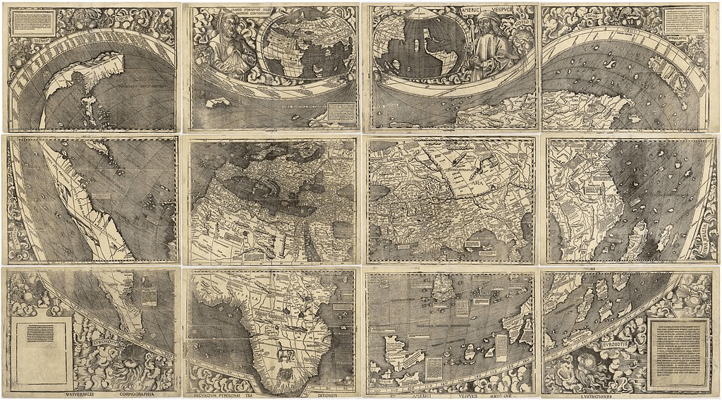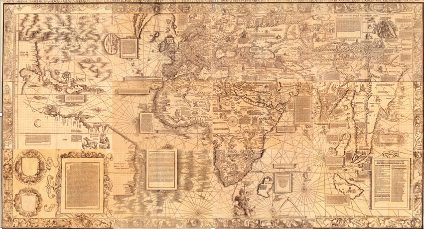 The Portolan chart made in the Vosgean Gymnasium expands the oikumene to include the New World, but does not use the word "America" but does not use the term "America"