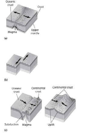 Which diagram shows a divergent plate boundary?