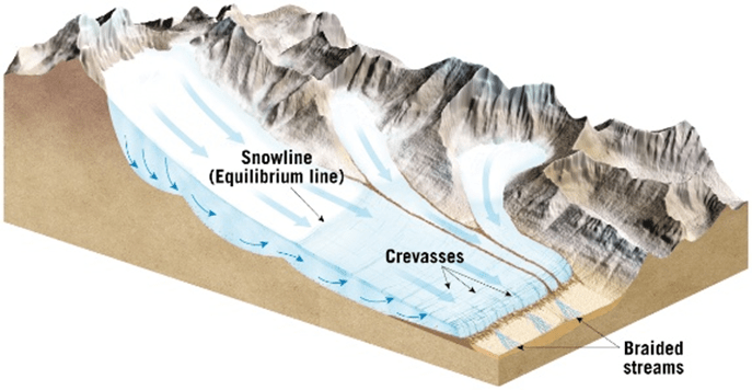 This is the area of the glacier below the snowline in the image below: