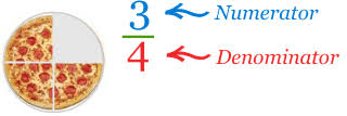 The Numerator is the top number of a fraction that shows how many parts are shaded in/ coloured.