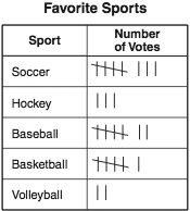 Based on the Tally Chart: Soccer is the most popular sport with 8 votes. Volleyball is the least popular with 2 votes.
