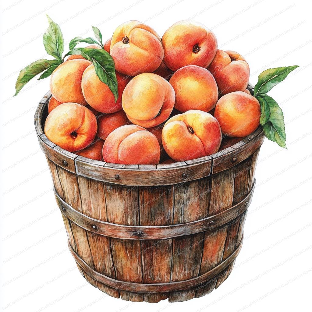 There will be 7 peaches in each bag