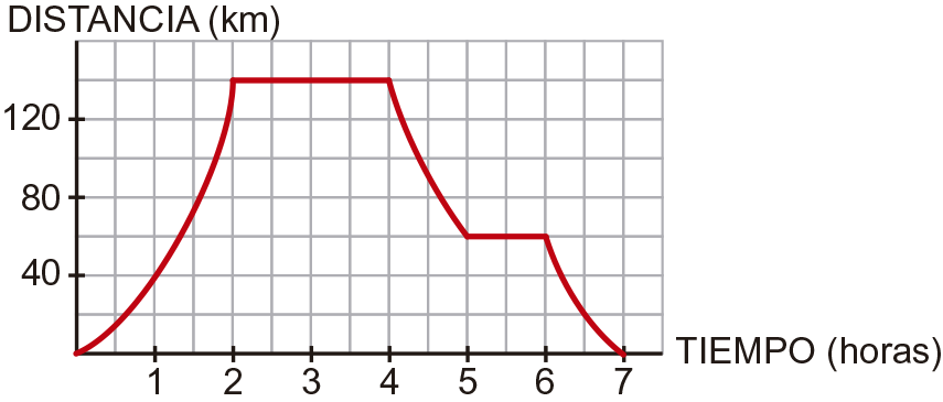 The graph below represents a bus trip for a group of students. It reflects the time (hours) and the distance (km) that separates them from the study center.