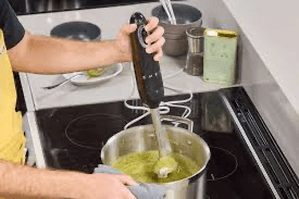 Bonus (Not in lesson binder.) Long, slender handheld tool with a motor and blades, directly immersed into the cooking vessel to chop, blend or purée, eliminating the need to transfer ingredients to process.
