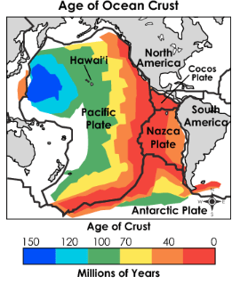 In 1968, the Deep Sea Drilling Project began extracting sediment cores from the ocean floor. Analysis of these cores has since shown that the ocean basins are very young compared to the accepted age of the Earth. No rocks older than 180 million years have been found. The cores further indicate that ocean sediments are absent at the mid-ocean ridge and get thicker moving away from the ridge.