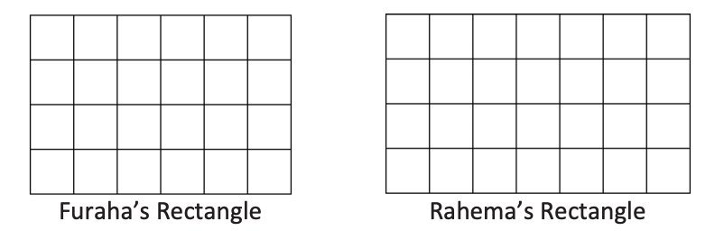Furaha and Rahema push their rectangles together. What would the TOTAL area be?
