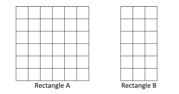 Find the area of rectangle A and the area of rectangle B. Then, find the TOTAL area.